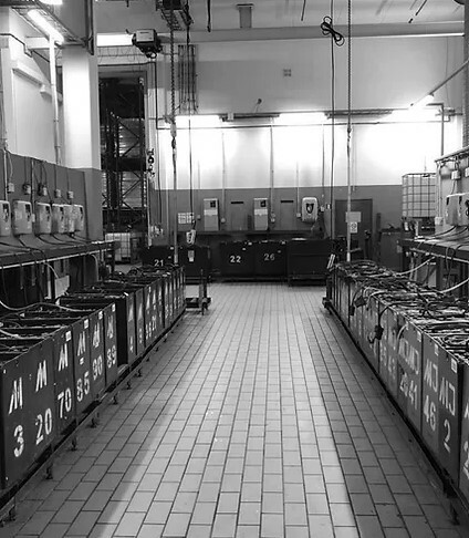 Поставка, изготовление и монтаж "под ключ" оборудования зарядной (вентиляция, электроснабжение, диспетчеризация, столы для установки аккумуляторов, электролит, водоподготовка, дистиллированная вода, средства индивидуальной защиты, инструмент, запасные батареи и т.д.)